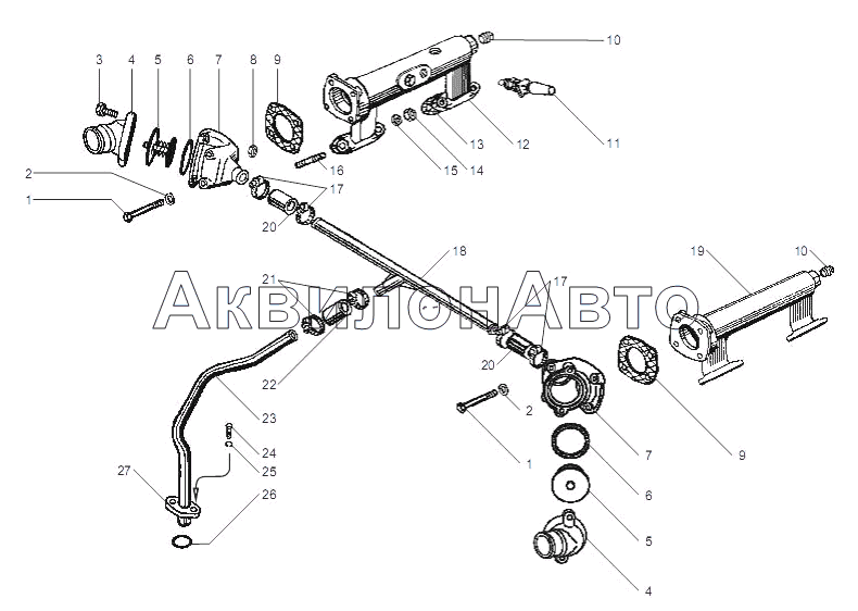 Патрубок коробки термостата