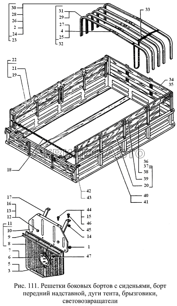 Решетка бокового борта с сиденьями правая