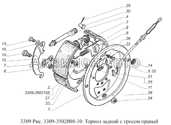 Тормоз задний с тросом правый