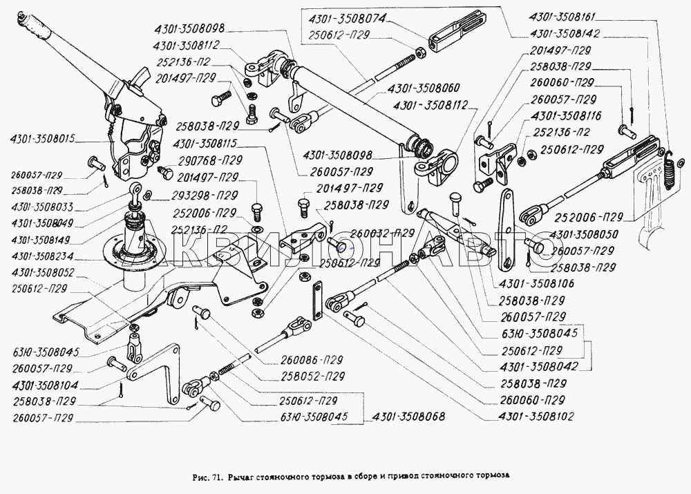 Рычаг стояночного тормоза в сборе и привод стояночного тормоза