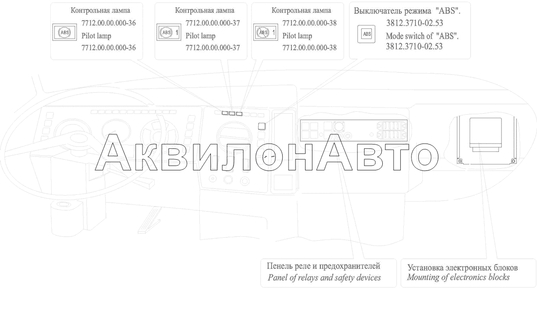 Расположение элементов электронных систем в кабине автомобиля МАЗ-437041