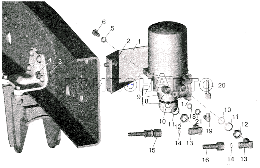Установка осушителя воздуха и присоединительной арматуры МАЗ-642208, 642205
