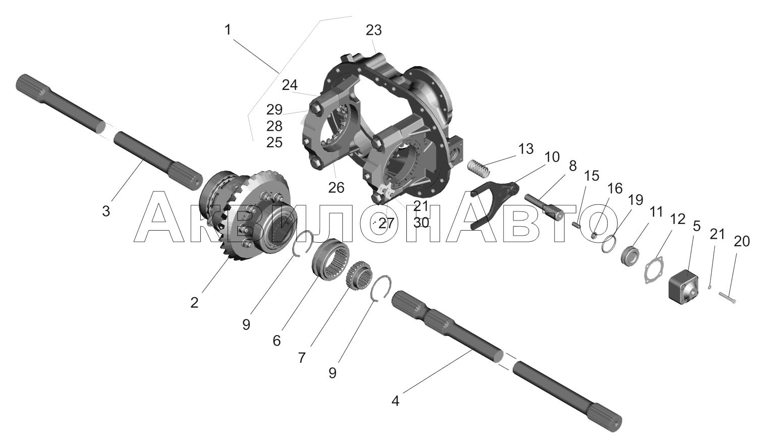 Редуктор среднего моста. Дифференциал с картером редуктора